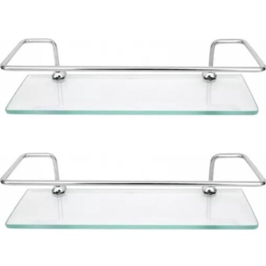 Kit 02 Porta Shampoo Reto 40 Cm De Vidro Com Haste