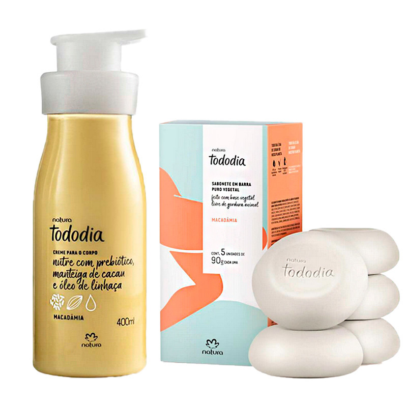 Kit Macadâmia Tododia Natura: Hidratante 400ml + Caixa de Sabonetes 5/90g cada