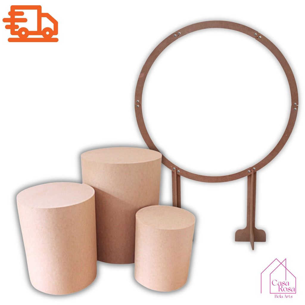 Kit Cenario Para Festa Trio de Cilindros e Painel Redondo 1.50m / Mesa do Bolo, Fundo Instagramável