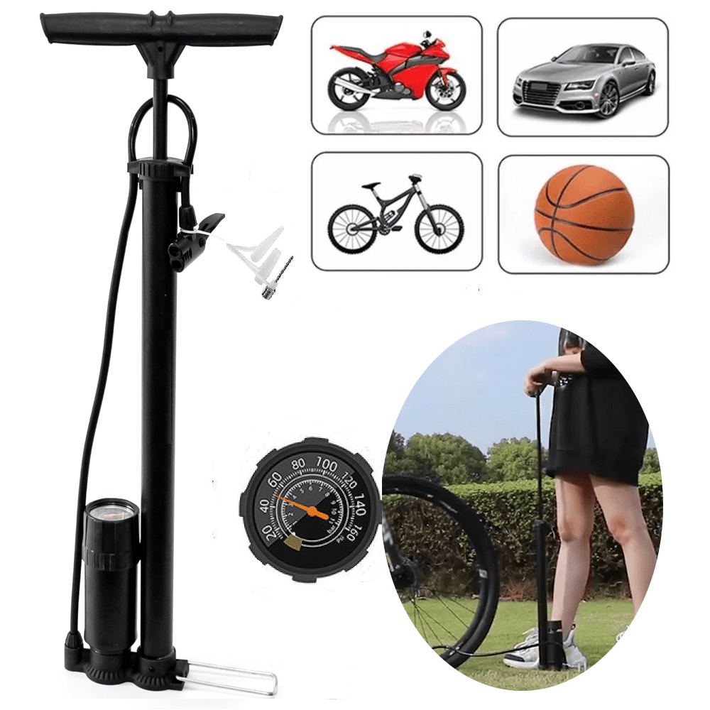 Bomba De Encher Pneu Bola Bicicleta, Carro, Moto, Boias Chão Manometro