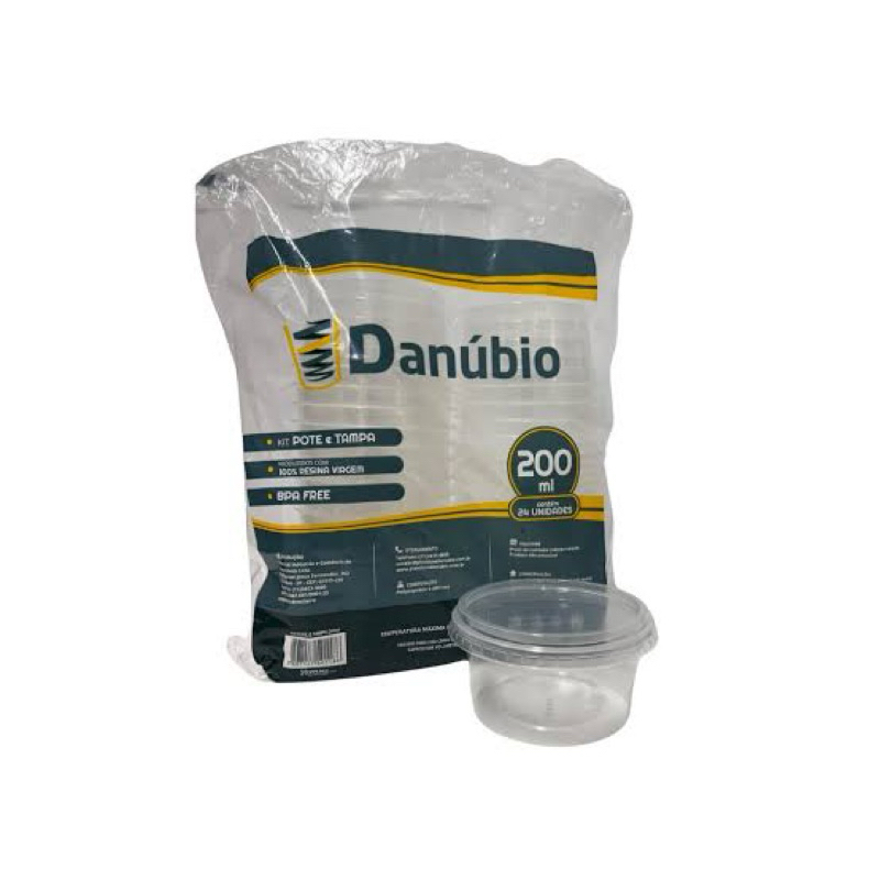 24 unidades Kit pote redondo c/ tampa descartável 200ml - Danúbio