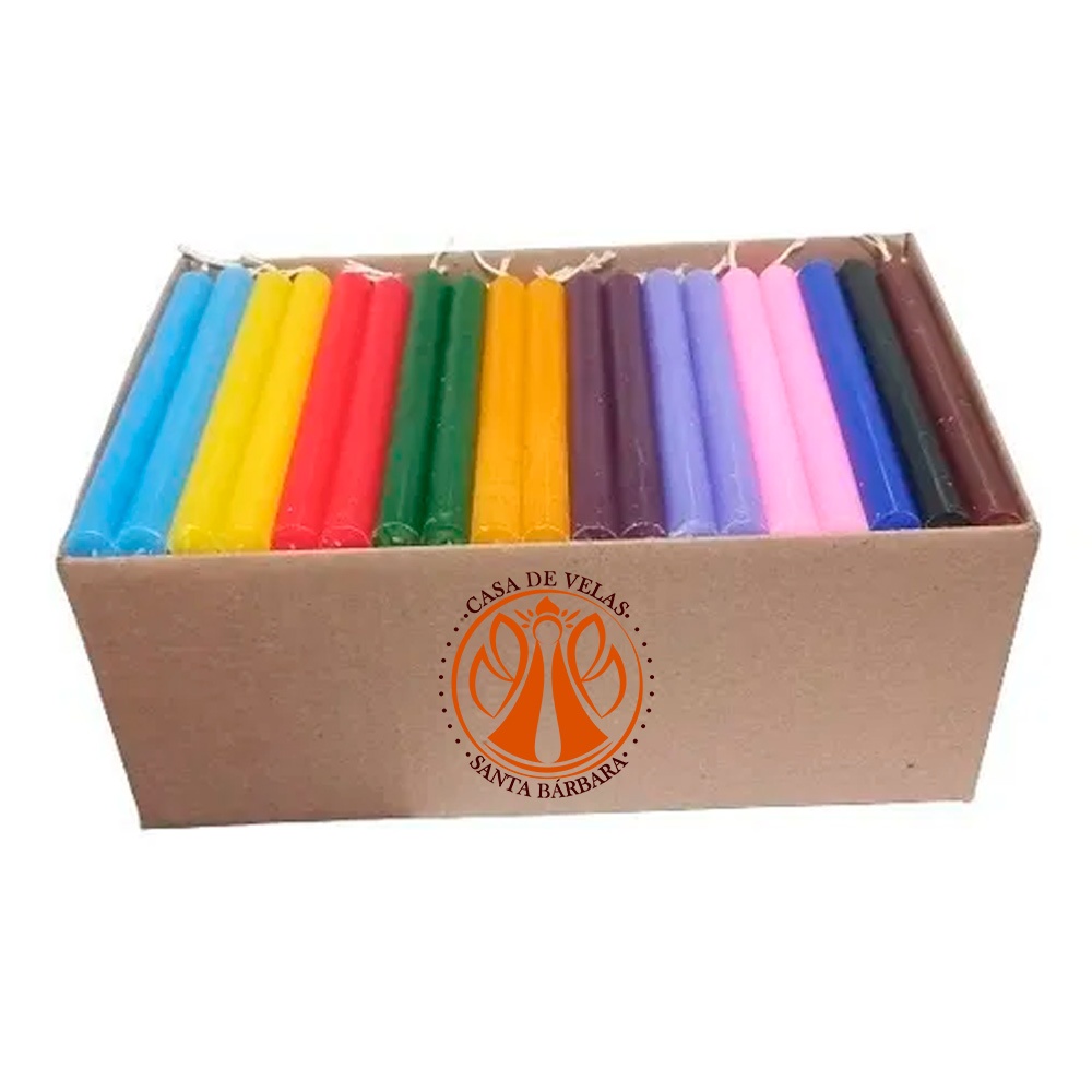 Kit 100 Velas Palito Branca e Coloridas com Várias Cores e Bicolores 18cm Parafina Pura