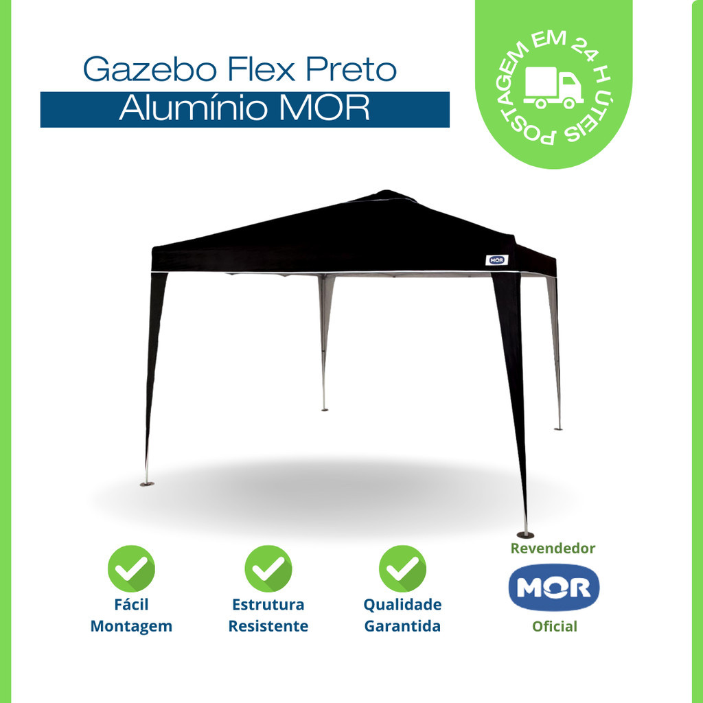 Tenda De Praia Sanfonada Mor X-Flex Preto Gazebo 3x3 Metros Articulado Pé Aluminio MOR