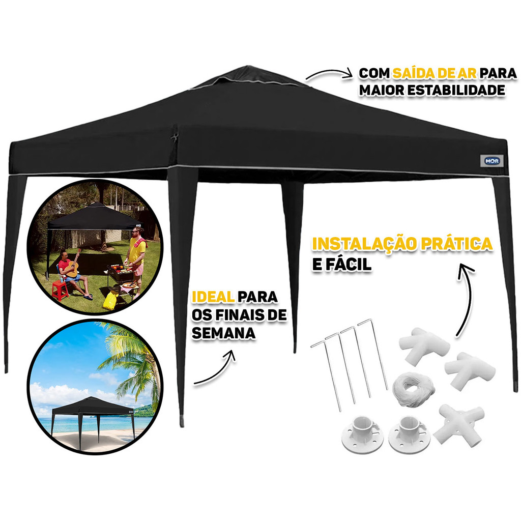 Gazebo Articulado X-flex Mor Preto Tenda Praia 3x3 Barraca Camping