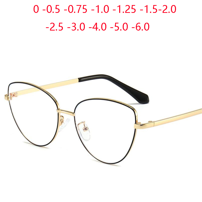 Moldura De Ouro Preto Anti-Raios Azuis Óculos De Miopia De Olho De Gato Com Grau De Metal Prescrição De Computador Dioptria 0-0,5-0,75 A-6,0