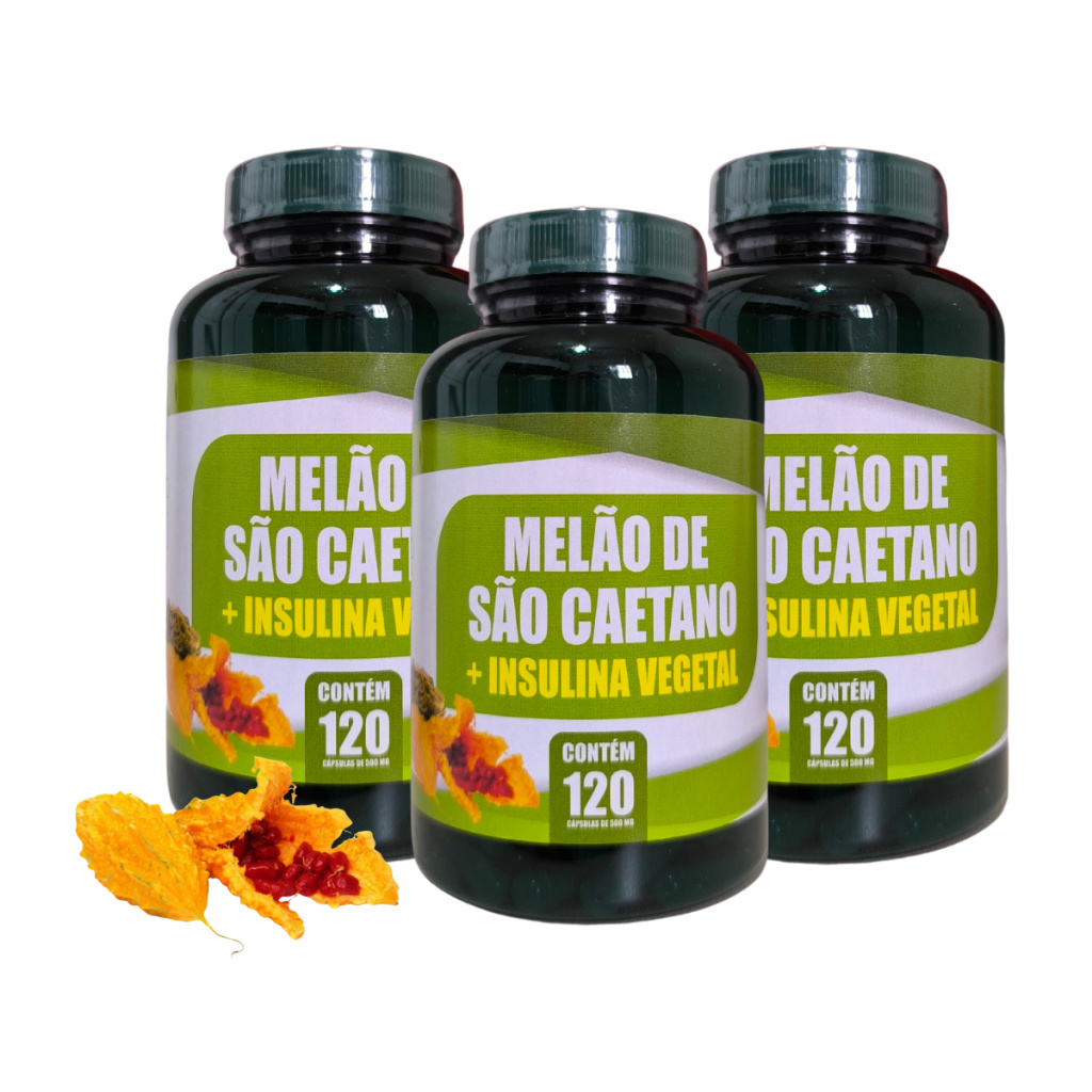 Melão de São Caetano + Insulina Vegetal 500 mg - 120 Cápsulas - Kits Com 1, 2 e 3 Unidades