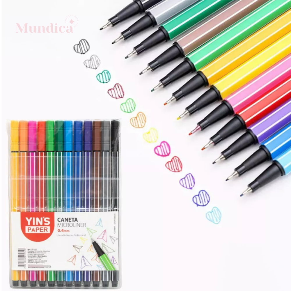 Kit com 6/10/12/18/24 Caneta Hidrográfica Fineliner Ponta Fina 0.4mm /Escola/Escritório/Papelaria