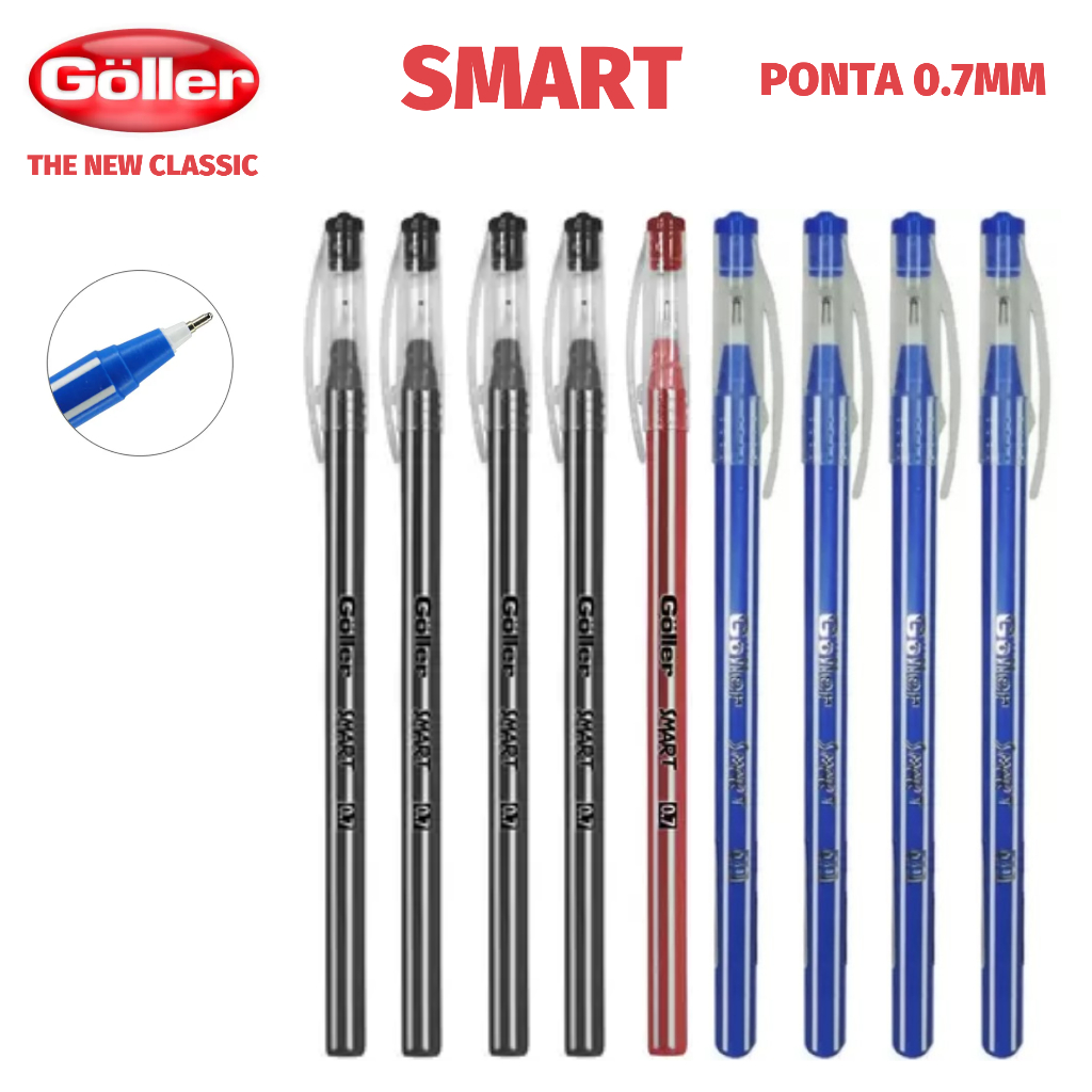 Kit Caneta Goller Smart Ponta Fina 0.7mm - Azul, Preta e Vermelha
