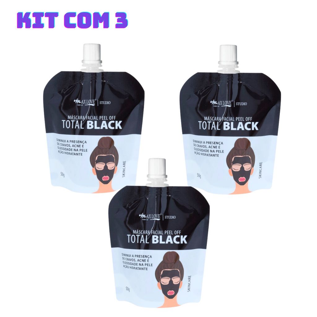 Kit C/3 Máscara Facial Peel Off Total Black 50g - Max Love