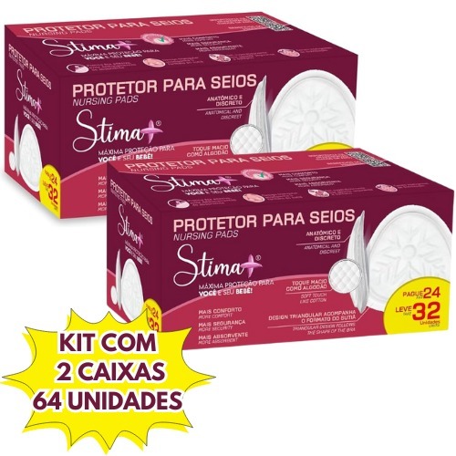 Kit 2 Caixas Absorvente Protetor de Seio Stima+ C/64 UN (Cada CX Com 32 Un) Toque Macio