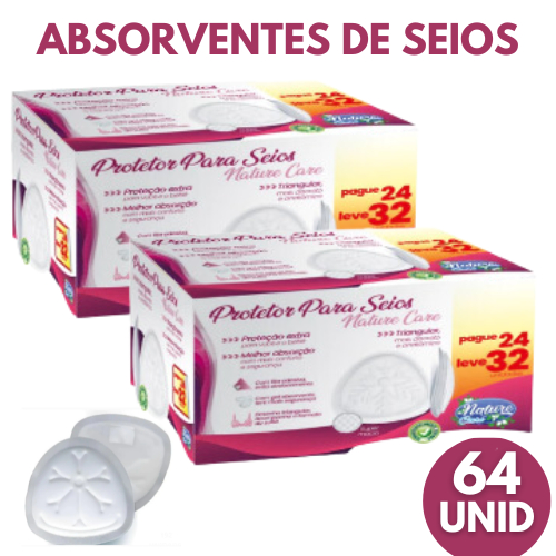 Kit 2 Caixas Absorvente Protetor de Seio Nature Care C/64 UN (Cada CX Com 32 Un) Toque Macio