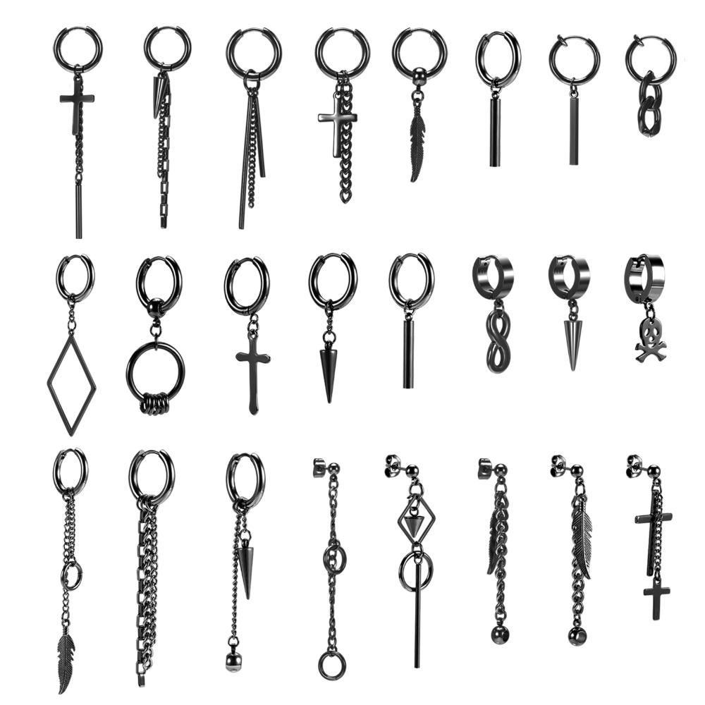 6 Pcs Brincos Em Forma De Aço Inoxidável Longos Punk Hip Pop Kpop Drop Cross Chain Pendant