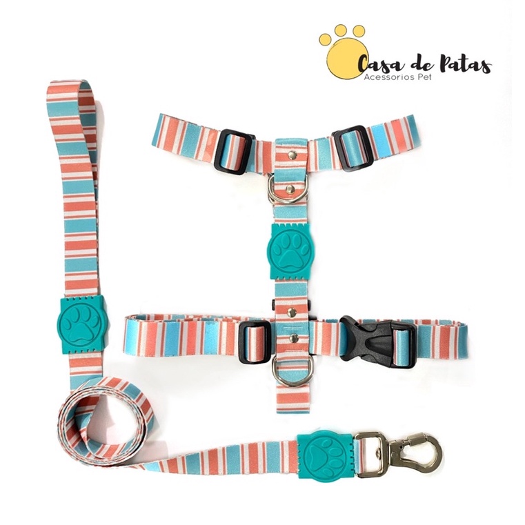 kit Coleira: Peitoral Modelo H + Guia de 2,20m Varias Estampas