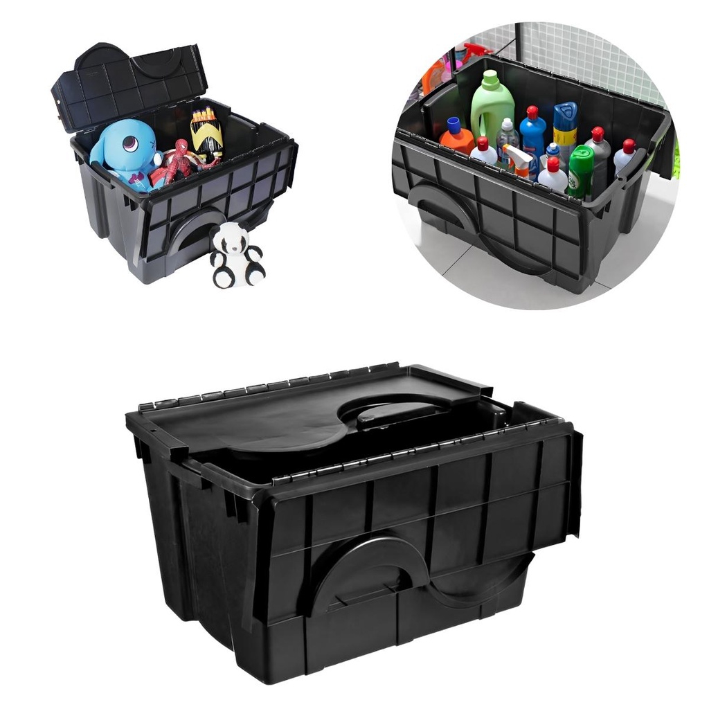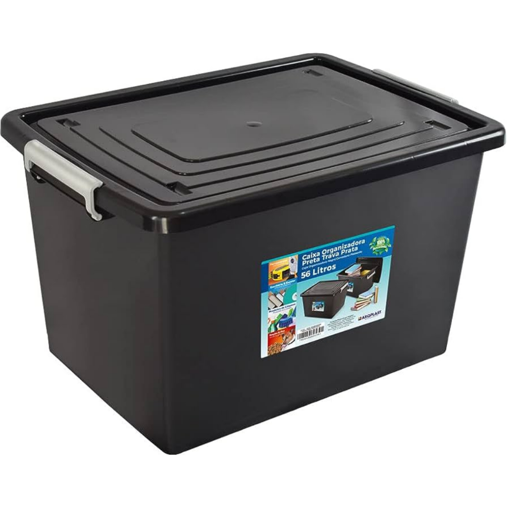 Caixa Organizadora Grande 56L Preta Plastica para Brinquedos com Tampa e Trava Empilhável