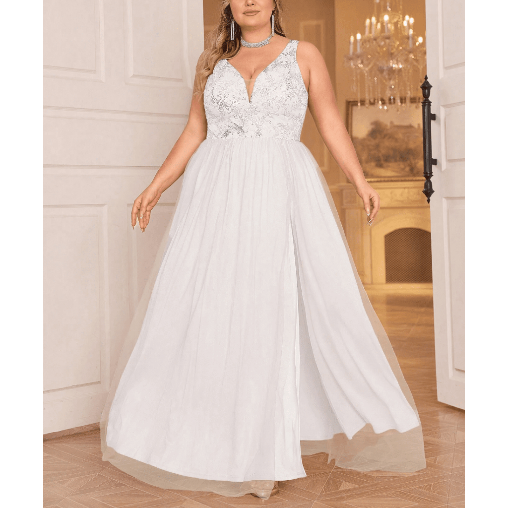 Vestido de Noiva Longo Casamento no Civil Plus Size Brilho Tule Ensaio Fotográfico Simples Branco