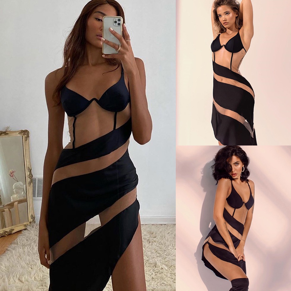 Mulheres Mini Vestido Bodycon Feminino De Malha De Verão Transparente Com Costas Abertas Para Festa