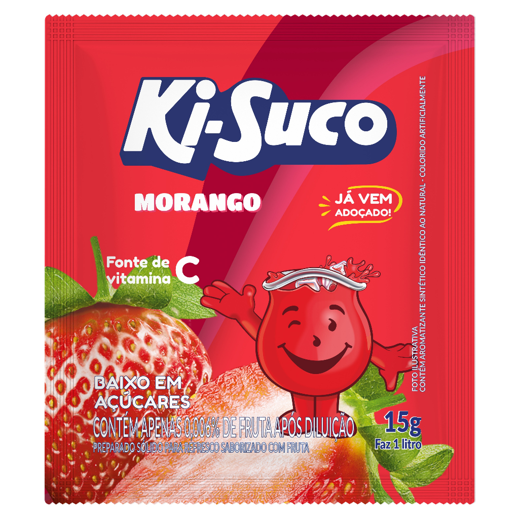 Suco Refresco Em Pó Ki-Suco Sabor Morango Display (Caixa) com 15 unidades de 15g cada um Faz 1 Litro