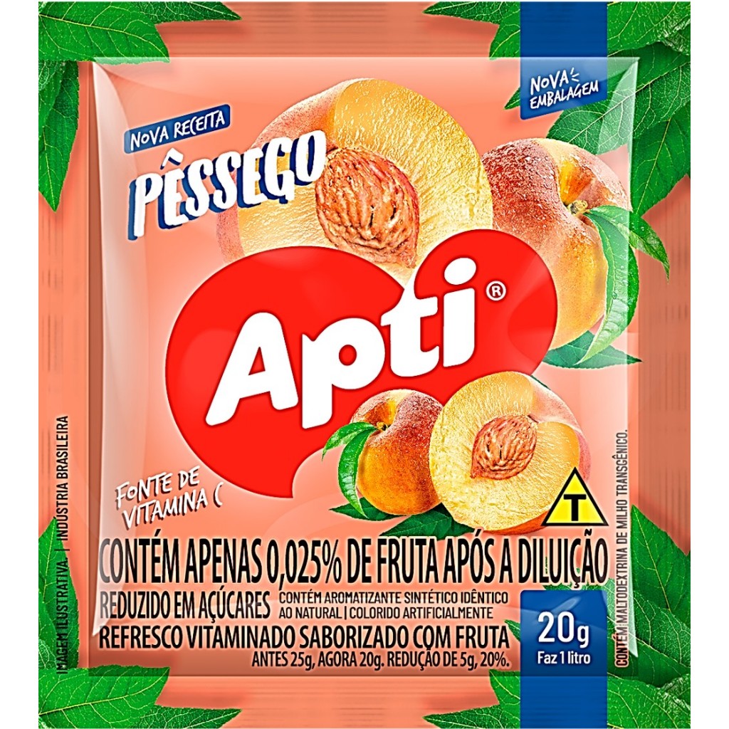 Suco Refresco Em Pó APTI Sabor PÊSSEGO Display (Caixa) com 15 unidades de 20g cada um Faz 1 Litro