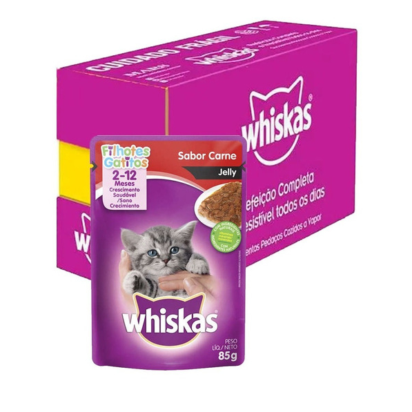 Sache wiskas filhotes sabor carne jelly 85g caixa c/12 unidades.