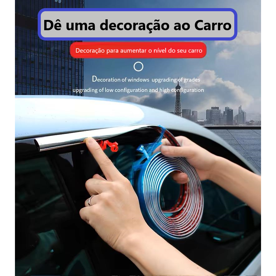 M101 - Moldagem Cromada 8/10/12/15/20 mm Tira Protetora Decorativa Lateral Da Porta Do Teto Carro Várias Medidas 15 metros