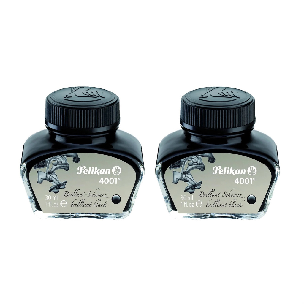 Kit Com 2 Tinta Para Caneta Tinteiro Pelikan 4001 30ml Brilliant Black Cor Preto OEM ( Sem Caixa ) Made in Germany