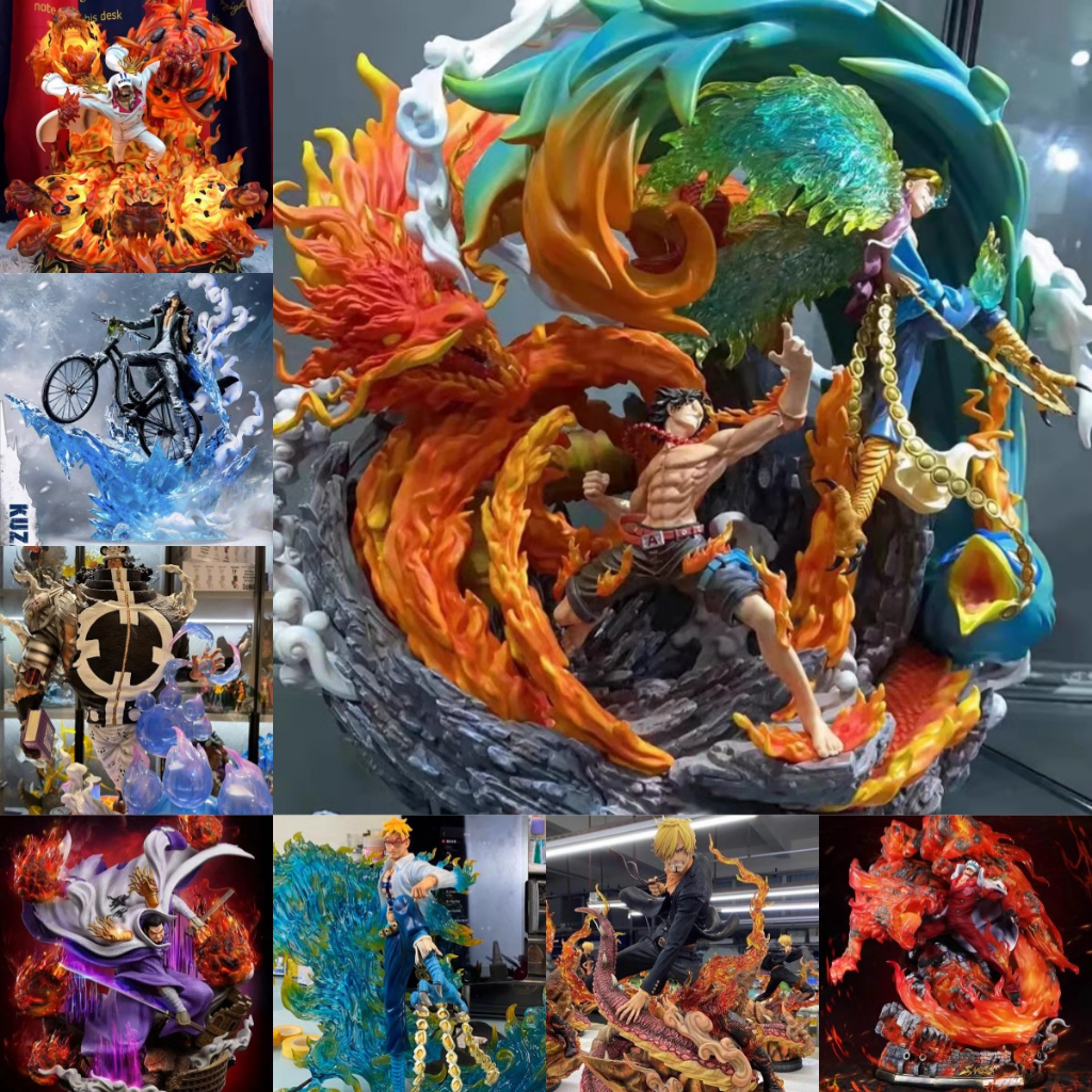 Gk Figura Uma peça g5 Figura Ilha Fantasma Malcolnami Luffy Zoro Ace Figura Escritório Decoração de mesa