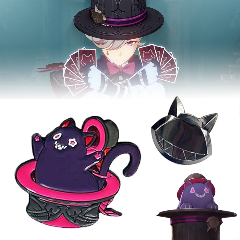 Jogo Genshin Broche De Impacto Lyney Chapéu De Gato Alfinetes Moda Broches Bonitos Unisex Cosplay Acessórios Presentes