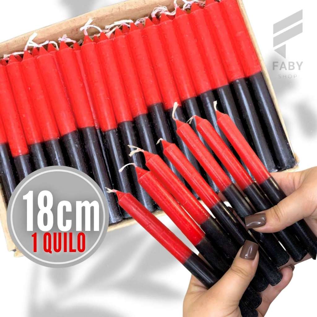 Vela Palito 18cm Preto e Vermelho Bicolor Grossa Tradicional 1 Quilo Kg Vela Número 07