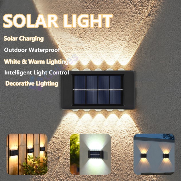 Luminária Solar De Parede Kit 4-8 LED À Prova D'água Para Jardim Muro e Varanda