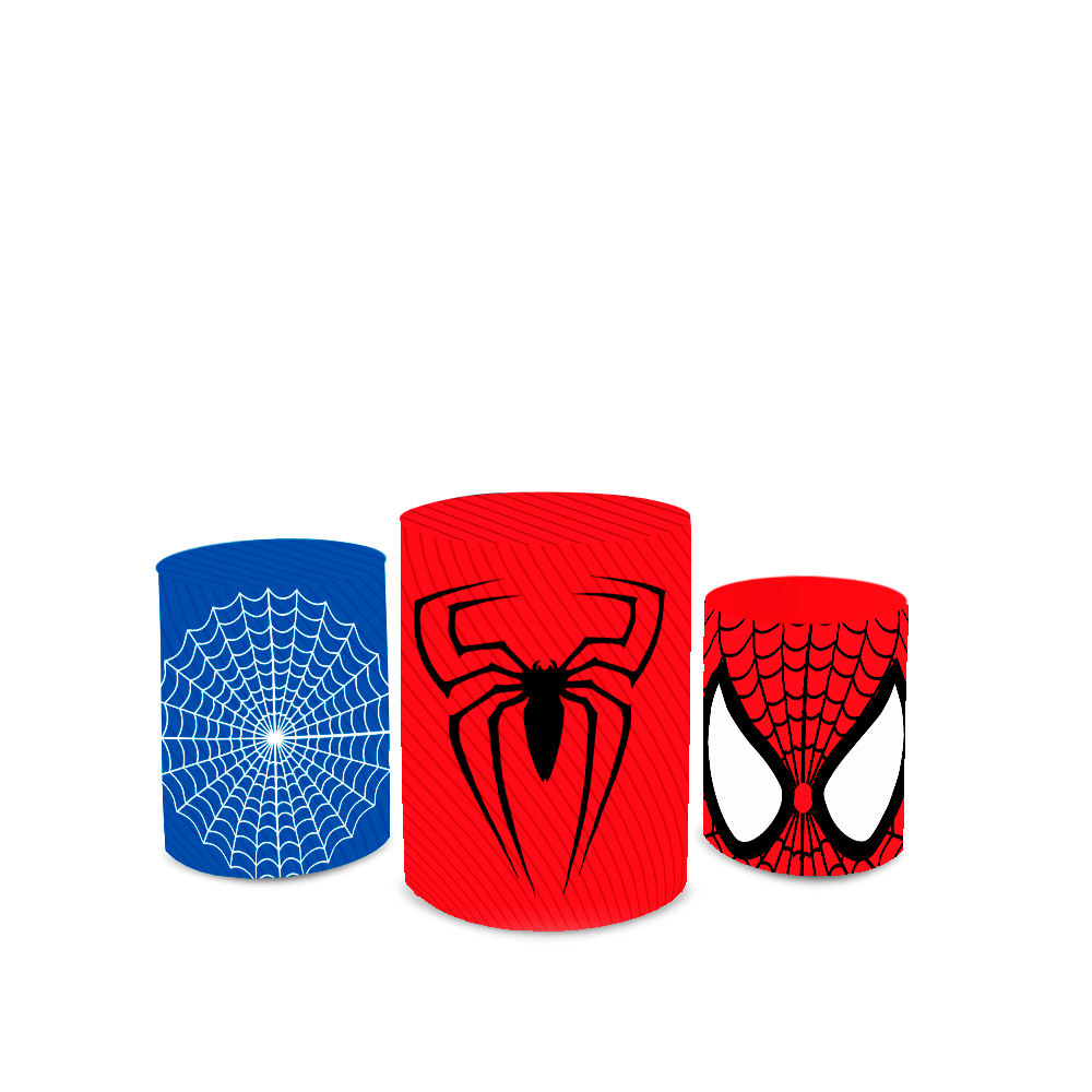 Kit Trio Capa De Cilindro Em Tecido Para Decoração Festa Tema Homem Aranha Bibi Painéis
