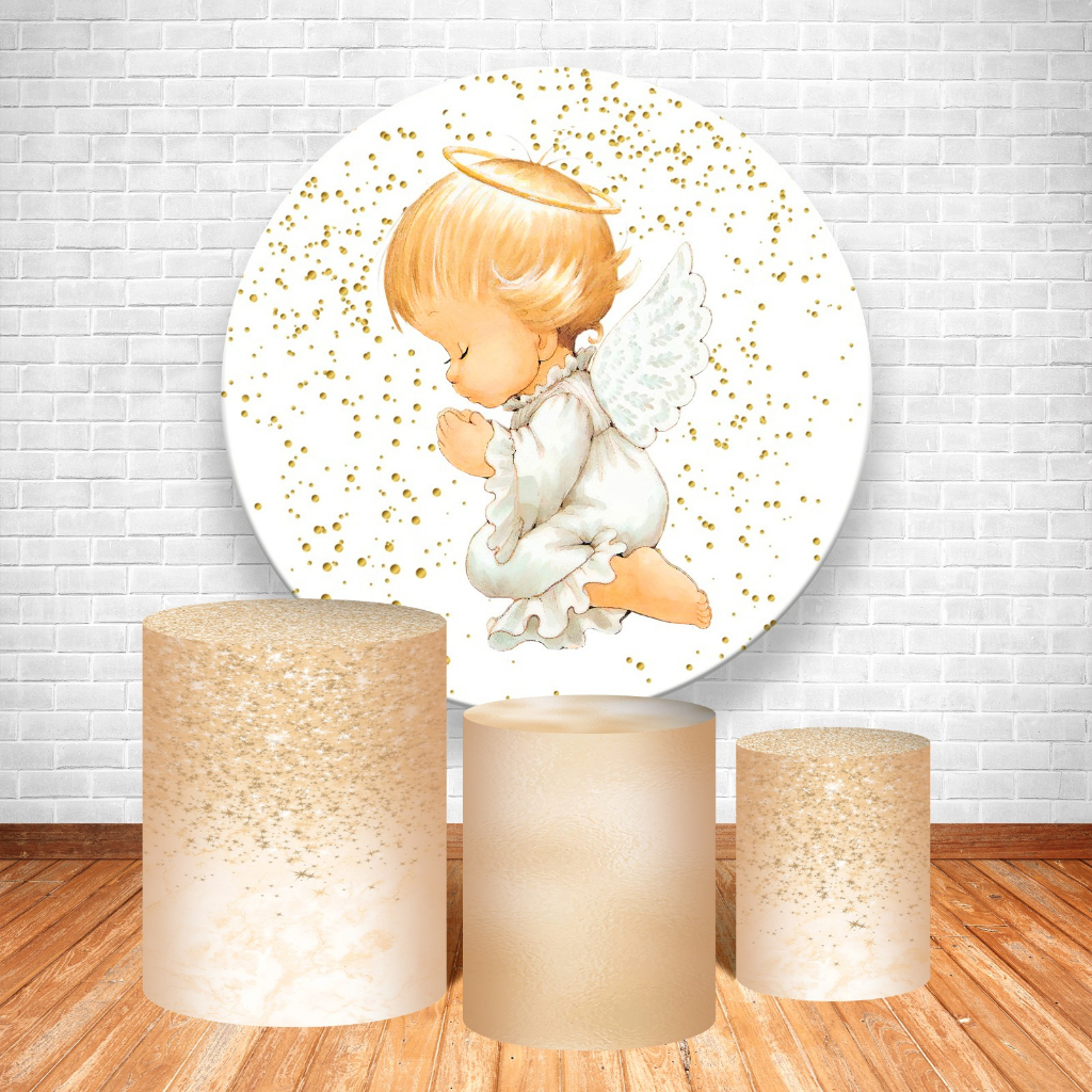 Kit Painel Redondo Batizado Em Tecido 1,50D C/Elástico E Capas Cilindro P M G Veste Fácil Decoração