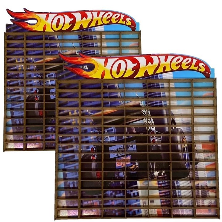 Kit Dois 2 Estantes Expositor Porta Carrinhos Hotwheels 105 Nichos Miniatura Prateleira Adesivada Coleção Mdf Promoção Black Friday