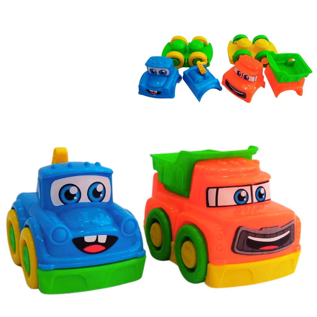 Kit 2 Mini Carrinhos Caminhão Infantil Monta Desmonta Encaixa Brinquedo Didático Colorido p/ Bebês Crianças Meninas e Meninos