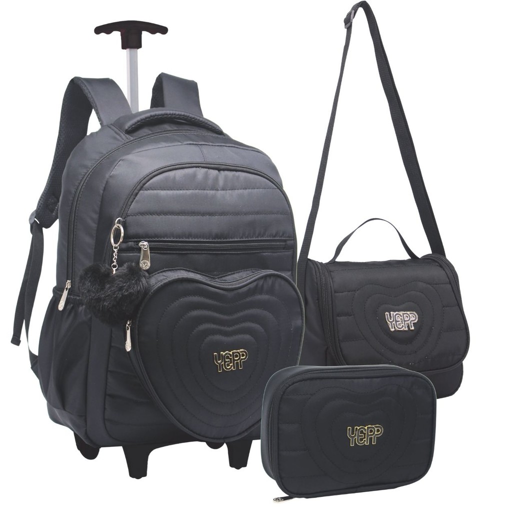 Kit 3 Peças Escolar Juvenil Mochila de Rodas Lancheira Térmica Estojo Porta Lápis Caneta Material Menina Resistente