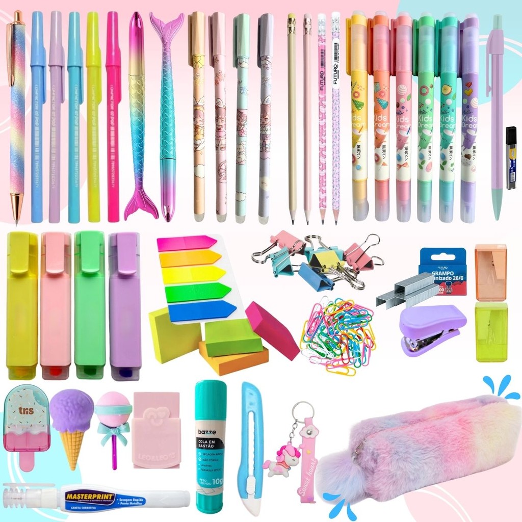 Kit Material Escolar Feminino Completo 43 Itens Volta As Aulas 2024 Menina