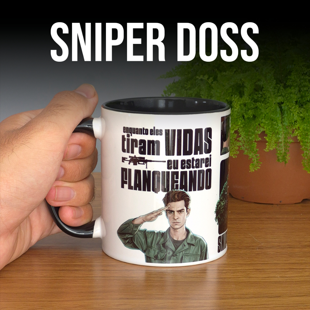 Sniper Doss - Caneca Porcelana Grande Preta 325ml Estampa Battlefield 6 Coleção Gamer