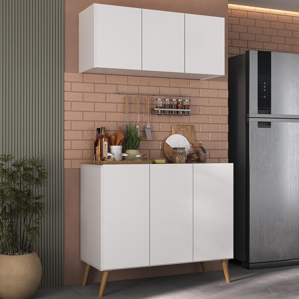Kit Armário de Cozinha Aéreo e Balcão 3 Portas Retrô Multimóveis Mp2168 Branco/natural