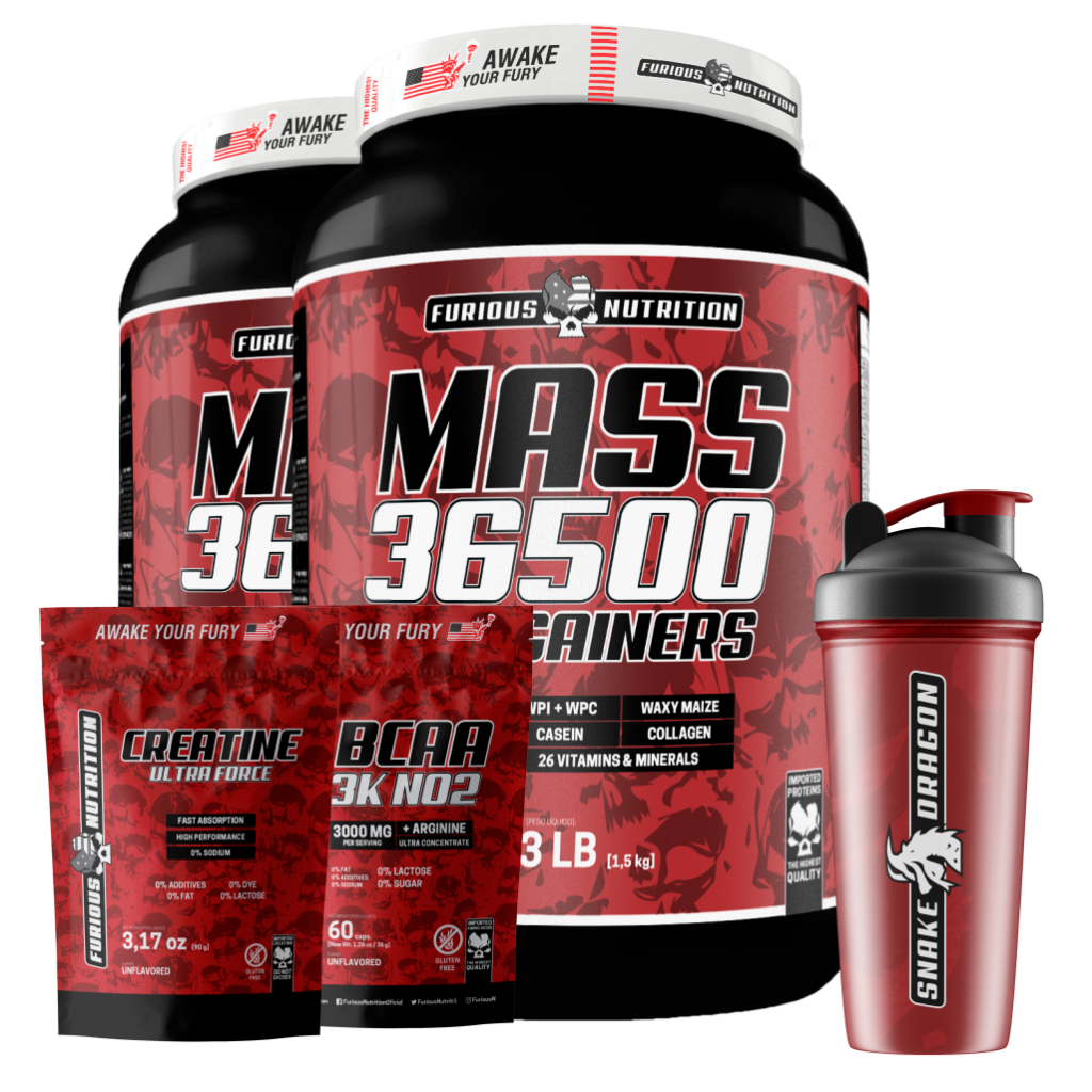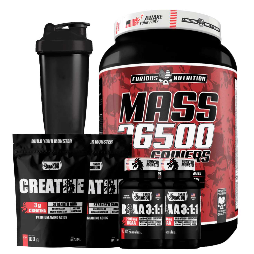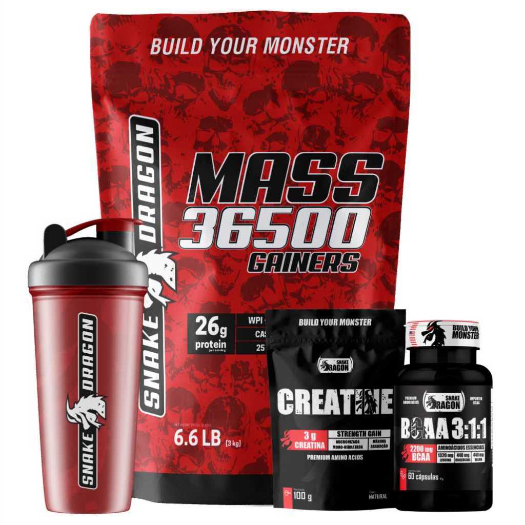Kit Hipercalórico Mass 36500 Gainers 3kg + Creatina Snake Dragon 300g