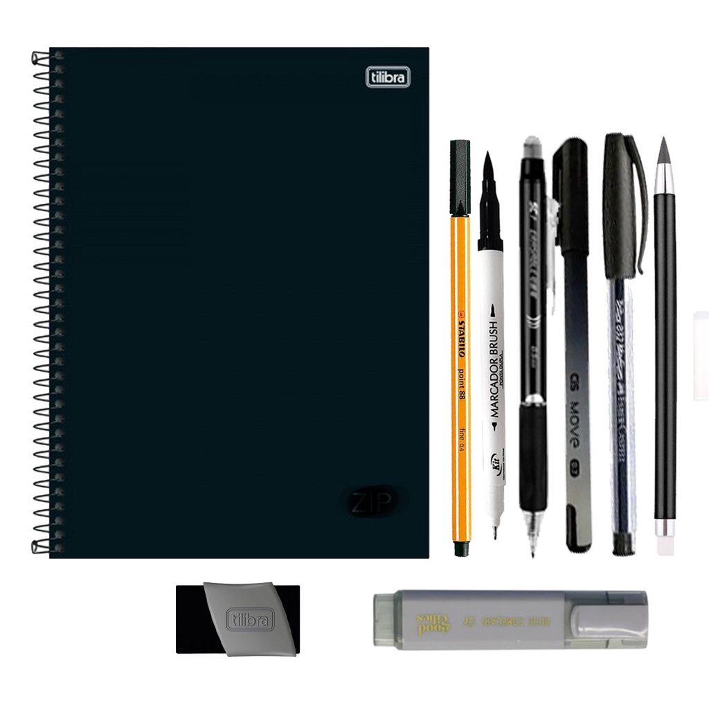 KIT MATERIAL ESCOLAR/ESCRITÓRIO PRETO COM LÁPIS INFINITO & CANETA STABILO