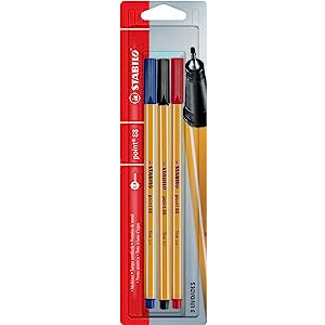 Caneta Stabilo Point 88 Kit c/3 Cores Azul Preta e Vermelha
