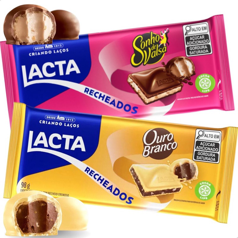 Tablete de Chocolate em Barra Recheado Sonho de Valsa ou Ouro Branco 98g - Escolha o sabor - Lacta