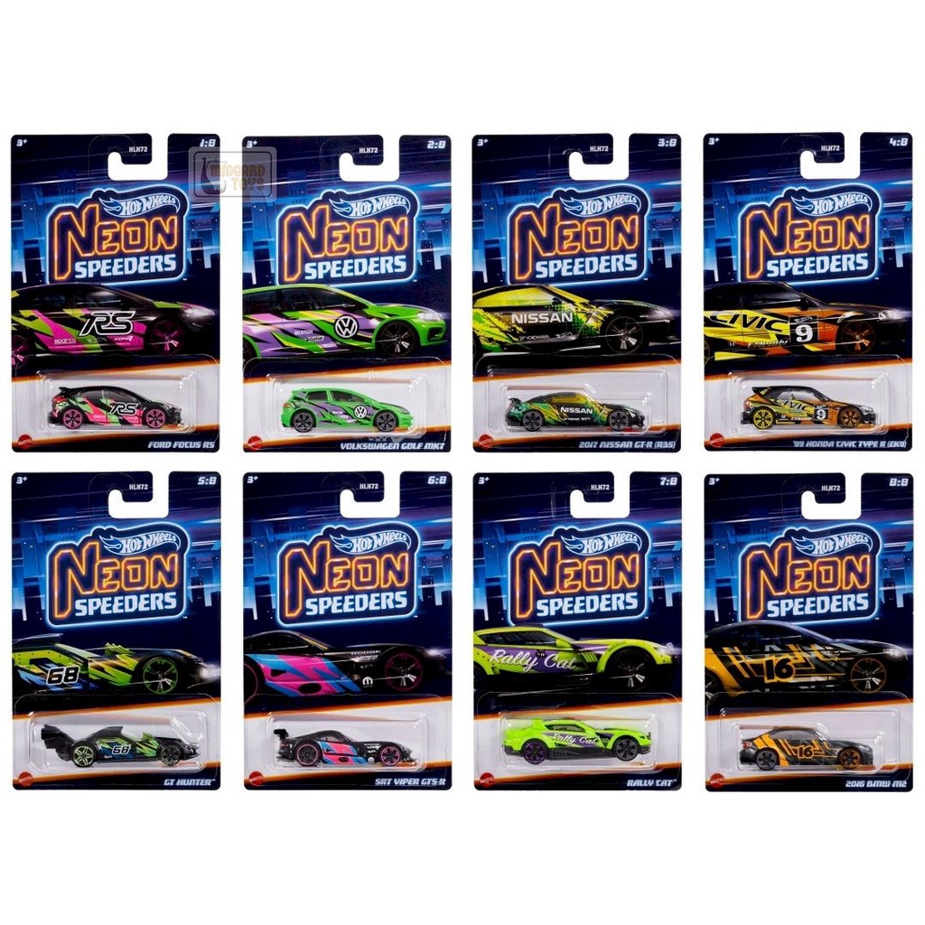 Coleção Completa com 8 Miniaturas Série Neon Speeders HLH72 - 1/64 - Hot Wheels