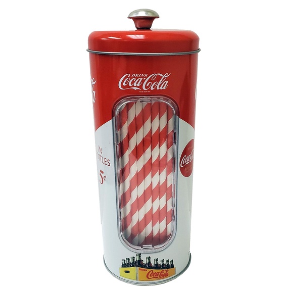 Porta Canudo Coca Cola de Lata c/20 Canudos de Papel Vermelho e Branco Decorativo Presente de Natal, Mesa de Natal, Aniversarios Miniatura - Colecao Completa 15 Mini Garrafinhas Coca Cola com Engradado