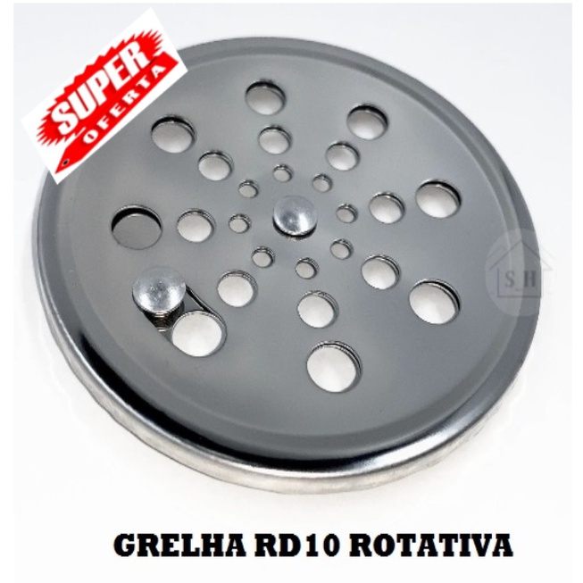 Tampa Ralo 10 cm (9,6 cm)Grelha Redondo com Fecho Abre e Fecha Rotativo Aço Inox