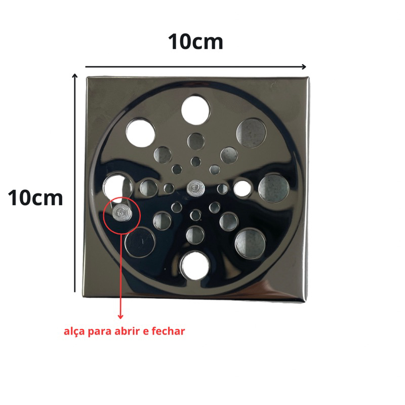 ralo de banheiro grelha tampa Inox quadrado abre e fecha 10x10 cm não acompanha o porta grelha
