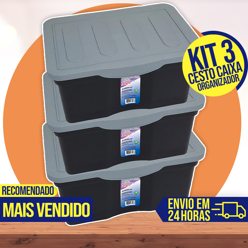 Kit 3 Caixas Cesto Organizador 5 Litros Grande Com Tampa Multiuso Armazenamento