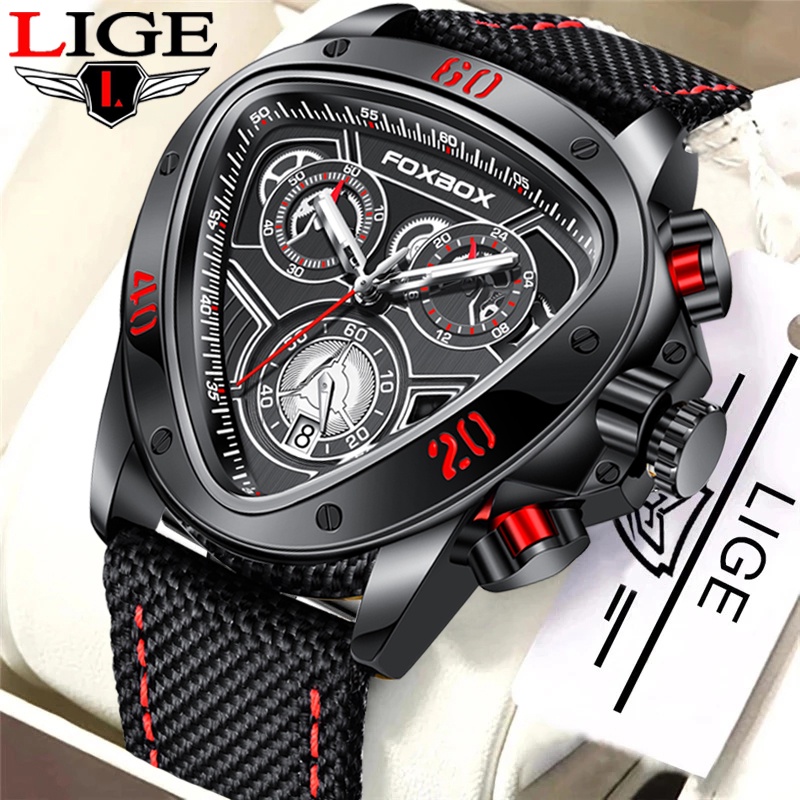 Relógio LIGE Sport Racing Design Triângulo Geométrico Piloto Relógio Masculino Impermeável Relógios de Quartzo Luxo Marca Top