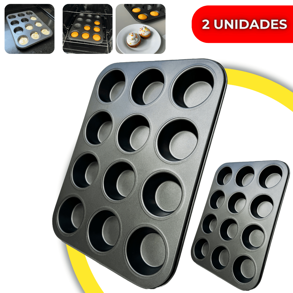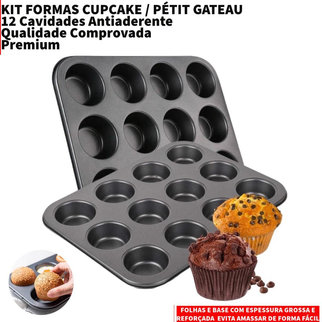 Kit 2 Forma Para Cupcake Bolinhos Pão de Mel E Queijo 12 Cavidades Antiaderente Grande