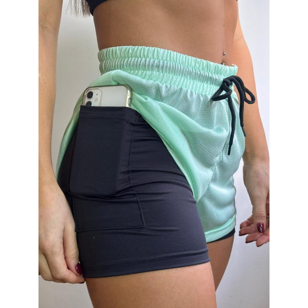 Short 2 em 1 Feminino Dryfit Academia Bermuda Dupla Para Treino Caminhada Corrida e Outros Esportes