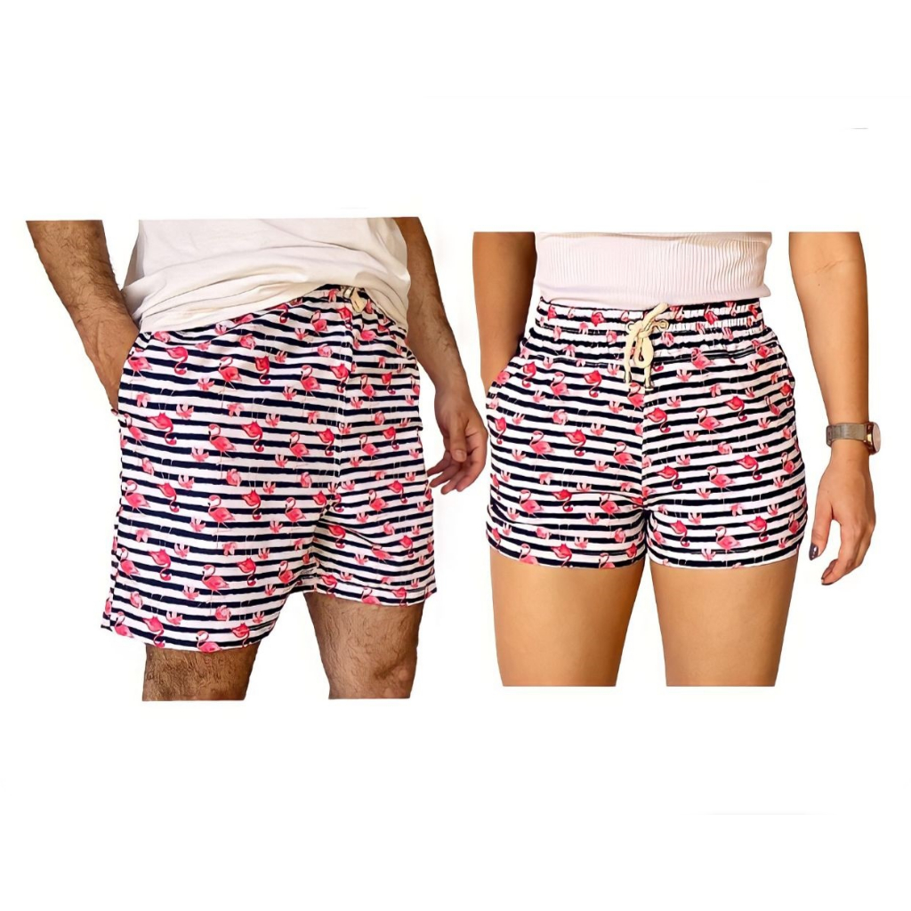 Conjuntinho de short para casal combinando flamingo treino corrida academia bermuda casal feminino masculino